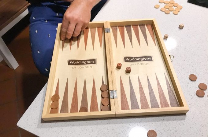 We bought a backgammon set about 4 years ago with every intention of playing a few games on weekends to relax. The backgammon set promptly went straight into the cupboard (with all the other games) and hasn’t been taken out since, until last night that is when hubby hauled it out to play.